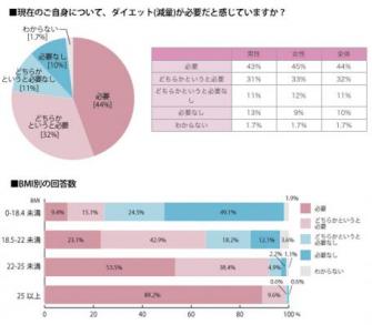 実際にBMI別でみたところ、標準体重の人でも半数以上が「ダイエットが必要」と回答。