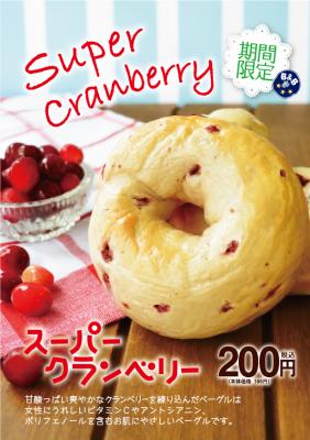 『スーパークランベリーベーグル』期間限定で新発売のお知らせです。