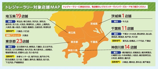 トレジャーラリーは2011年より実施している、トレジャーファクトリーメンバーズカード会員向けのキャンペーンです。キャンペーン期間内は「トレジャーラリー」対象の68店舗のなかから、どこでもお好きな5店舗へご来店いただくだけで、トレジャーファクトリー全店で使えるポイントをもれなく「500トレポ」プレゼントいたします。