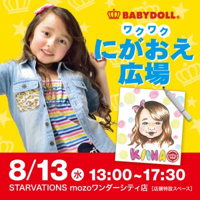 ベビー・キッズ服ブランドBABYDOLL(ベビードール)が、STARVATIONS mozoワンダーシティ店にて、お子様の似顔絵をライブスケッチしてプレゼントする[ワクワク! にがおえ広場]を8月13日(水)開催!