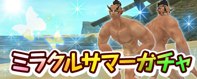 2014年8月5日(火)16時より、装備セット一式とグラフィックアイテムや消耗品の入った豪華ラインナップミニゲーム「ミラクル サマー ガチャ 2014」を販売開始いたしました。