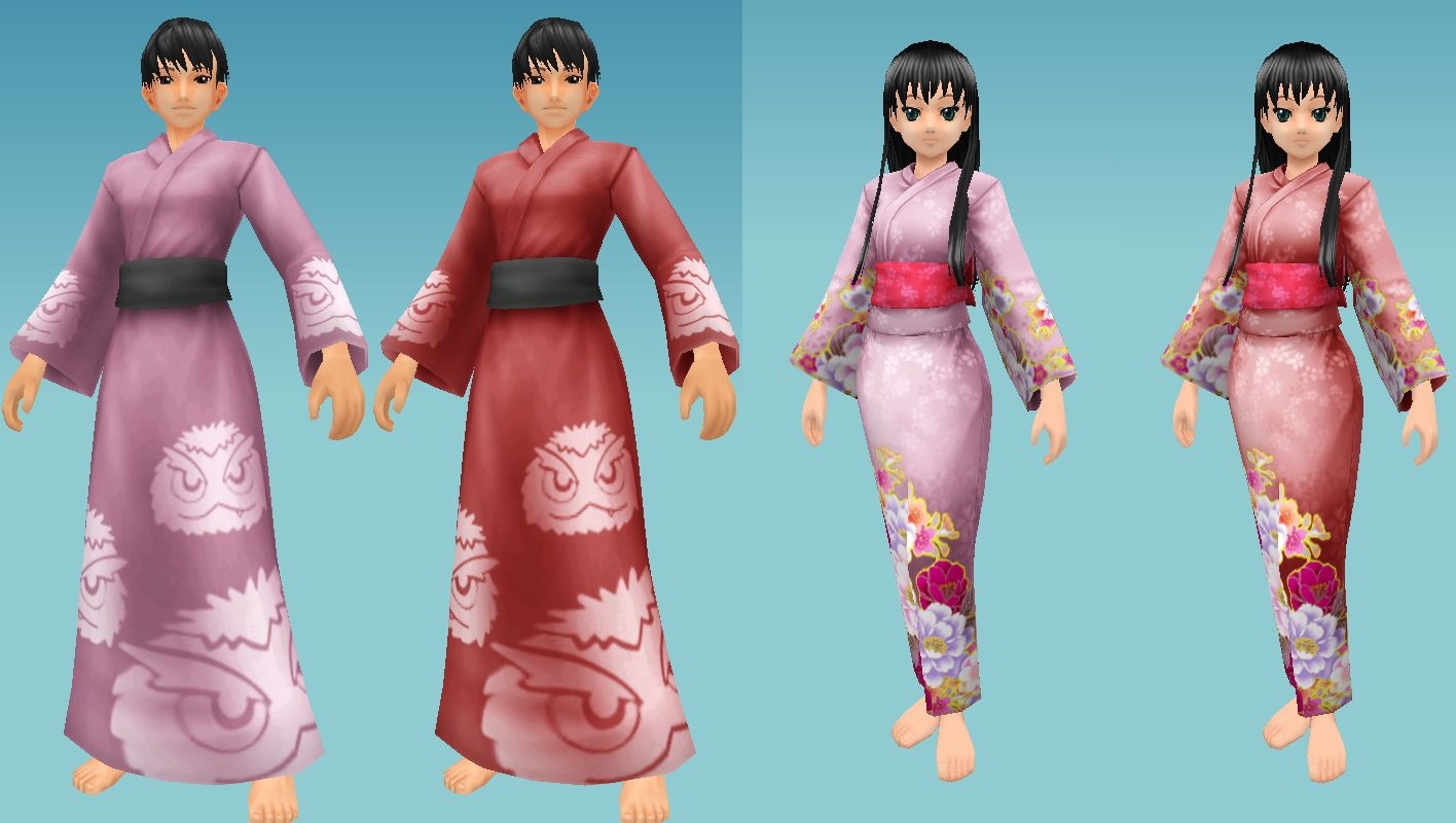 男性の浴衣は、『Master of Epic』で人気のペット「ウー」の刺繍を施したデザインとなっております。そして、女性の浴衣は、全体に煌びやかな華の刺繍を施した女性らしいデザインとなっております。