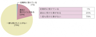 HIV/エイズ検査を「定期的に受けている」・「過去に受けた事がある」の割合は約2割、「1度も受けた事がない」の割合が約8割と、ほとんどの人が検査未経験なことが判明した。