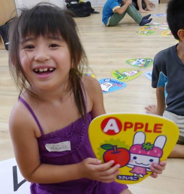 ・イベント内容 : 『いちごつみのシールで楽しく学ぶ 夏休み英会話教室』