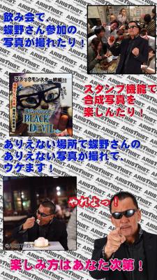 さらに、『蝶野カメラ』スタートを記念して、らあめん花月嵐「ブラックデビル」、 ブシロード「キングオブプロレスリング」のコラボフレームも期間限定で配信しています。