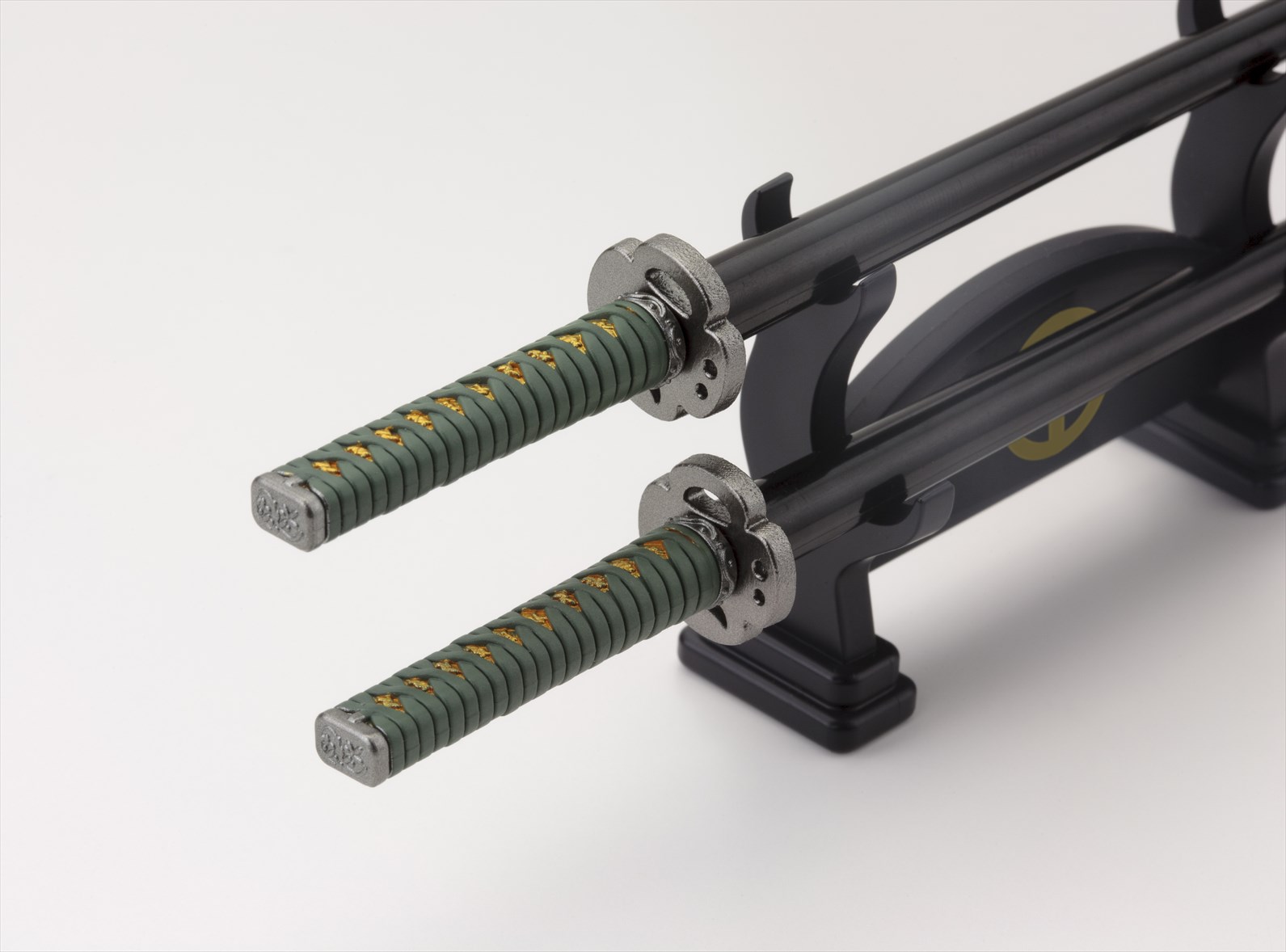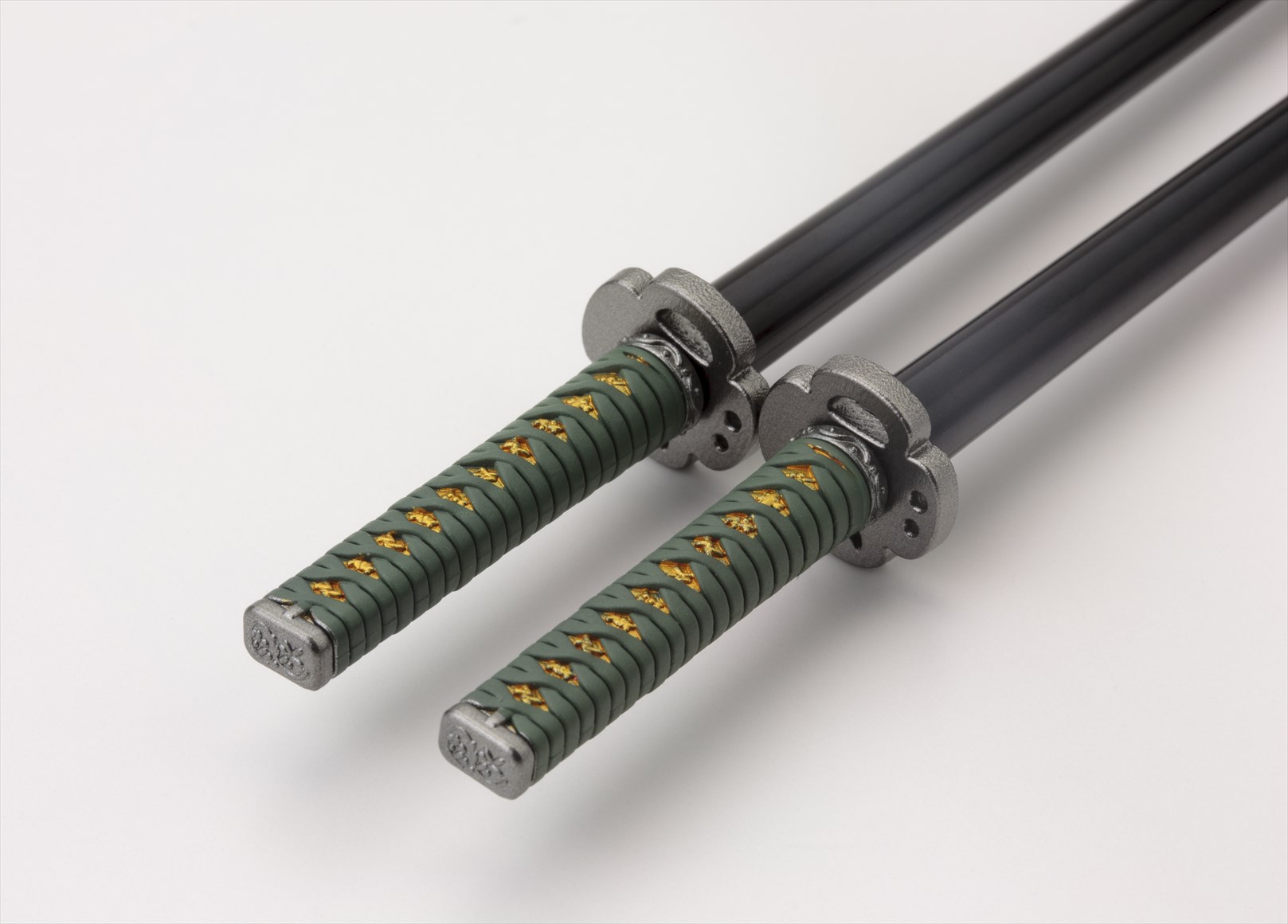 島津義弘は愛刀「西蓮」をモチーフに、加藤清正は愛刀「同田貫正國」をモチーフに、鍔などの部分のデザインにこだわり造型。柄部分は各武将をイメージしたオリジナルカラーです。