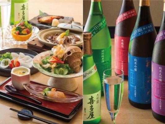 料理に合わせるお酒は日本酒・焼酎を中心に取り揃えており、福岡県(八女)の喜多屋酒造直送の厳選されたお酒を使用。日本酒は本醸造、純米吟醸、純米大吟醸、特別純米があり利き酒も楽しむことができる。