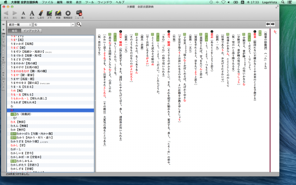 画面を最大限活用したインデックス検索を搭載。単語を記したパネルを所狭しと並べることで周囲の単語を見渡すこともでき、従来不足しがちとされてきた一覧性を補いました。特に、見出し語の「五十音」順だけでなく「事典」「学習のポイント(品詞別、敬語)」「枕詞」「季語」「解釈のポイント」「図版」・・・・・といった様々なパネルが準備されており、学習のみならず楽しめる辞典となっております。