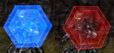 青と赤に輝く防御壁