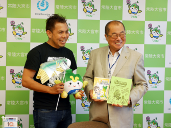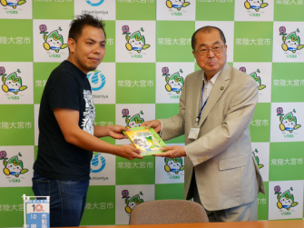 株式会社メディクリエ(茨城県つくば市)は茨城県の委託事業により、茨城県の魅力をPRする茨城県産アニメーション『あぐかる』の新シリーズ『あぐかるPLAY WITH IBARAKI編』を制作中。8月7日(金)、『あぐかる』の監督・芦名みのる氏が常陸大宮市役所を訪れ、8月1日(金)に公開となった「第5話常陸大宮市久慈川」のDVDを三次真一郎市長に贈呈、完成を報告した。