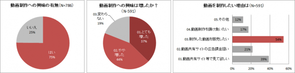PIXTA登録会員を対象に、動画に関するアンケート調査(期間4月14日~17日、有効回答786名)では、75%が「動画制作に興味がある」と回答しました。