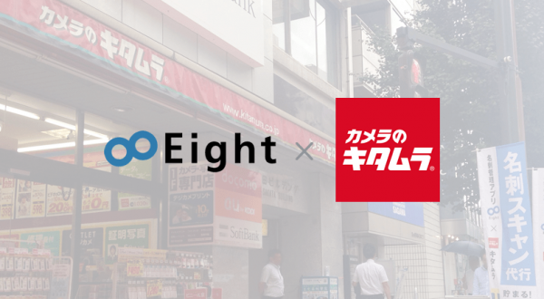 今回のキタムラとの提携では、店鋪預かり型の名刺スキャン代行サービスを実現します。ユーザーが名刺を店鋪に預けると、キタムラが名刺のスキャン作業を代行します。3日以内には名刺は返却可能となり、データはEightにとりこまれます。