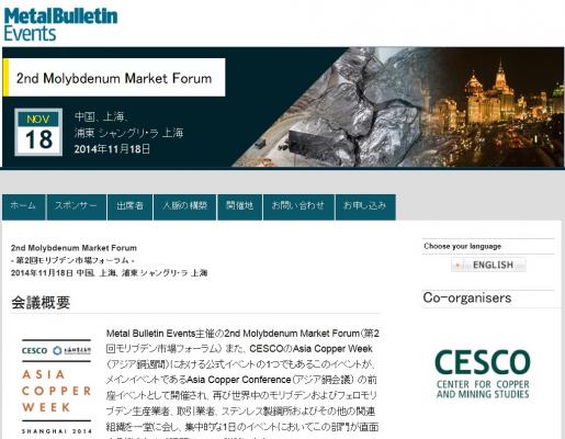 会議:「2nd Molybdenum Market Forum-第2回モリブデン市場フォーラム」