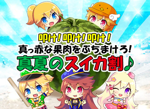 本イベントは、期間限定で遊ぶことが出来るレイドイベント形式で、ゲーム内にスイカが特設されます。プレイヤーは仲間と連携してスイカを叩くことで、スイカに与えたダメージの合計を他のプレイヤーと競い、結果に応じた豪華な報酬が獲得できます。神出鬼没な夏の風物詩と、数千人のプレイヤーが同時に参加する壮大な期間限定イベントをどうぞお楽しみ下さい。