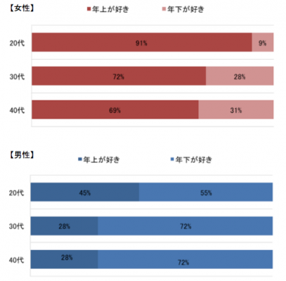 また、女性の方が年上好き、男性の方が年下好きとなっています。