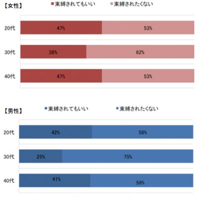 男女ともに働き盛りの年代なので、束縛されたくないと思う割合が多いのだと思います。