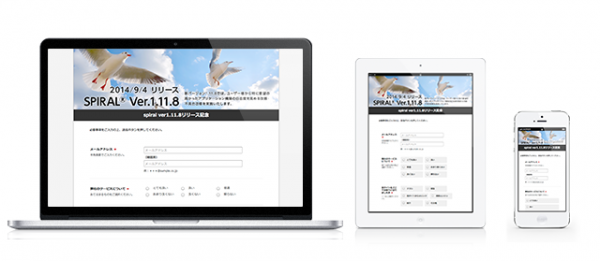 新バージョン1.11.8は、アクセスしてきたブラウザ環境を判別し、PC用、タブレット用、スマートフォン用に最適化したWebフォームに自動で切り替える、レスポンシブデザインに対応します。