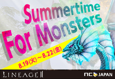 PC向けオンラインゲーム『リネージュ2~Epic Tale of Aden~(以下、『リネージュ2』)』をサービス、運営しているエヌ・シー・ジャパン株式会社(東京都渋谷区、代表取締役:金 澤憲(キム テクホン))は、2014年8月19日(火)より「SUMMERTIME FOR MONSTERS~この夏、熱すぎる!」を実施いたします。