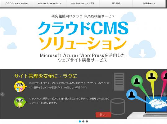 webコンサルティングに特化し、お客様の業績をアップさせる東京のwebプロデュース会社、株式会社ビー・オー・スタジオ(http://www.bostudio.co.jp/ 本社:東京都渋谷区、代表取締役社長:川添祐貴)は、研究組織機関向けにMicrosoft AzureとWordPressを活用したクラウドCMS構築サービスを2014年8月19日より開始しました。