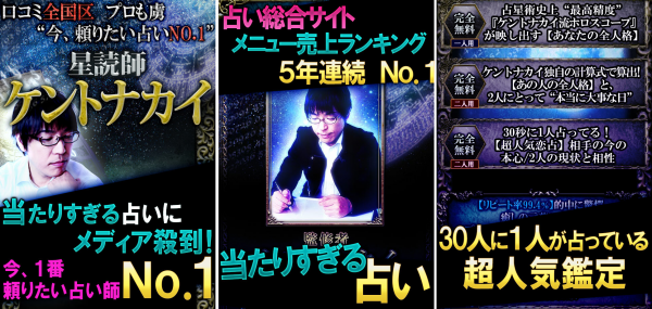 ・アプリ名称:『【売上NO.1】当たりすぎる占い師◆ケントナカイ』