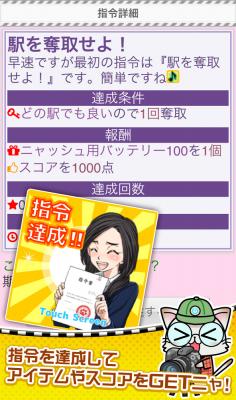 位置登録機能を使ってユーザーのいる鉄道駅を「奪取」し全ユーザーで日本全国の駅を奪い合う位置ゲームです。リアルタイム&リアルスポットで陣取りができ、一万近い駅をコレクションしたり、称号を集めたり、ランキングを競ったりなど、遊び方は自由です。毎日のログインであなたの電車移動のライフログとしてもお楽しみいただけます。