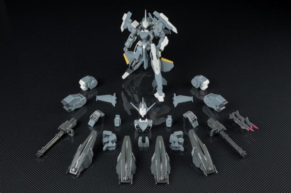 機体カラーの変更、バリエーション「SA-16 スティレット」、「SA-16d クファンジャル」、「SA-16s2 スーパースティレットII」の派生パーツの色を統一、全てをフルセットにしました。3種全ての機体を組み立てることが可能です。更に、新規造形の「左腕用ガトリングガン」、未組み立て状態の「フレームアーキテクトTYPE001」「専用のハンドパーツ」が付属します。カスタマイズにこだわるモデラーへ向けたアイテムです。