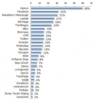 ・利用したことのあるネットショップ1位は「kaskus」、2位「Facebook」、3位「BlackBerry Messenger」