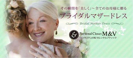 高級ドレスを扱うドレスレンタルサロン、「パーソナルクローゼット M&V」(運営会社:株式会社 UENマネージメント 所在地:東京都千代田区 代表取締役 楠田佳世)は、結婚式に参列する新郎新婦のお母様向けドレスのレンタルサービスにおいて新ブランド「M&V for Mother」を立ち上げ、8月25日よりサービスを開始いたします。