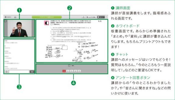 ネットスクールの税理士WEB講座は、大手専門学校でも長年の指導経験がある講師陣による講義を、インターネットを通じてリアルタイムに配信することで、近くに通える講座がない方でも、パソコンやスマートフォン、タブレット端末を通じて受講できるようにしております。また、リアルタイム配信の特性を活かして、チャットによる質問の受付や、アンケート機能を活用して受講生の理解度を確認しながら講義を進めることができるため、通常の教室講義のような双方向性のある授業も可能になっています。
