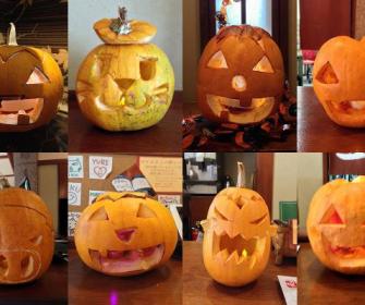 地元の農家とタイアップし、大きな南瓜を使ったジャックオランタン作り