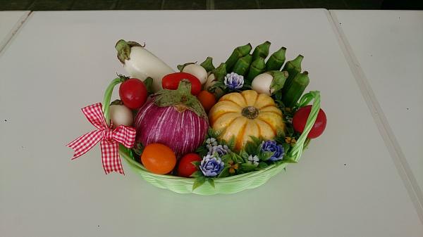 野菜はお子さまご自身がバスケットにラッピングし、収穫物の大切さを感じながらお持ち帰りいただく趣向です。