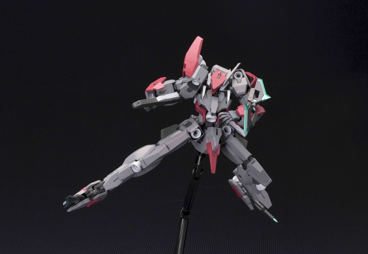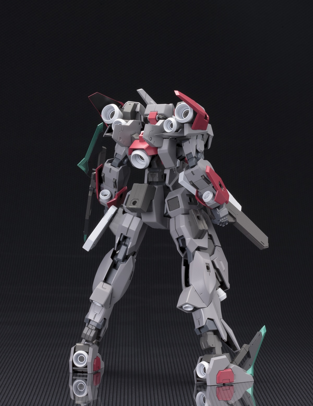 グレー×ワインレッドを基調としたカラーリング変更により、バーゼラルドの機体イメージを一新しました。新装備として、ショートライフル「IR-P13」、「ベリルダガー」が新規造形で付属します。ベリルダガーは手に持たせる他、つま先への取り付けも可能で、2基組み合わせることで、特殊シールド「ディフェンスローター」としても機能します。新規設計の足首関節により、接地性が大幅に向上しました。フェイス部とダガーはクリアーパーツ製で専用ハンドパーツが付属します。発売中の『フレームアームズ』各機体やパーツとの互換性もありますので、お好みのカスタムでより幅広いアクションポーズをお楽しみ頂けます。