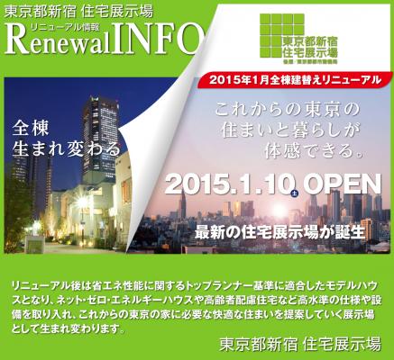 株式会社ファジー・アド・オフィス(本社:東京都新宿区 代表取締役 梶谷文明)は2009年9月から開設している東京都「住環境施策」パートナーとして展開している東京都新宿 住宅展示場の全モデルハウスの建替えを行い、2015年1月10日(土)にリニューアルオープンいたします。