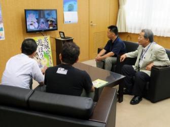 株式会社メディクリエ(茨城県つくば市)は茨城県の委託事業により、茨城県の魅力をPRする茨城県産アニメーション『あぐかる』の新シリーズ『あぐかるPLAY WITH IBARAKI編』を制作中。8月26日(火)、『あぐかる』の監督・芦名みのる氏がかすみがうら市役所千代田庁舎を訪れ、8月15日(金)に公開となった「第6話かすみがうら市霞ヶ浦」のDVDを坪井透市長に贈呈、完成を報告した。