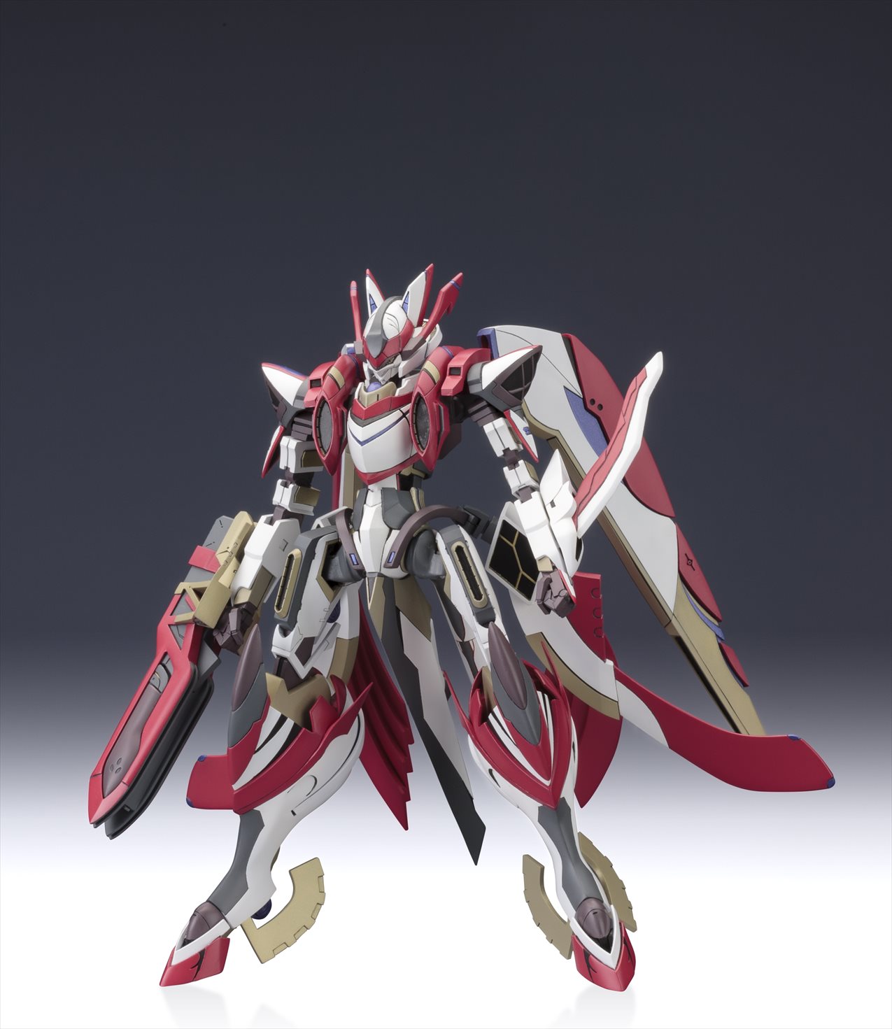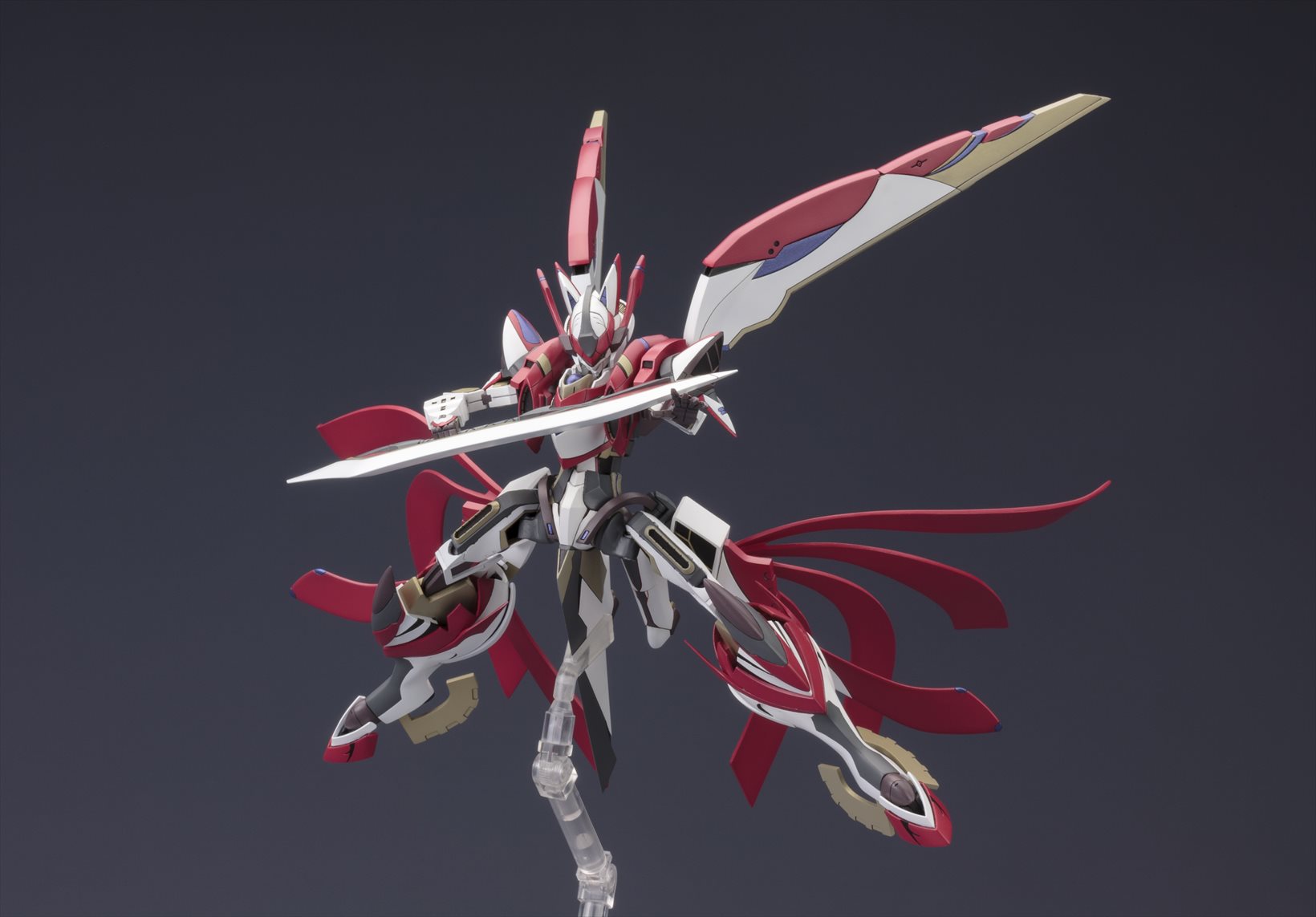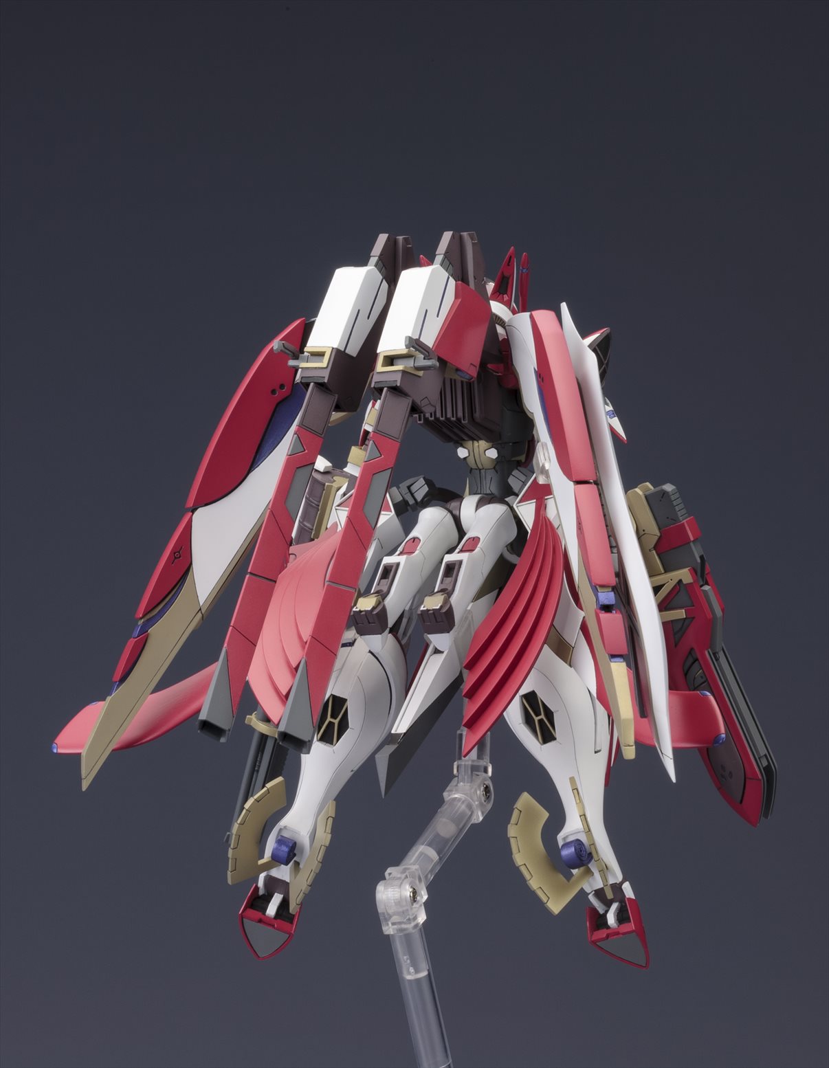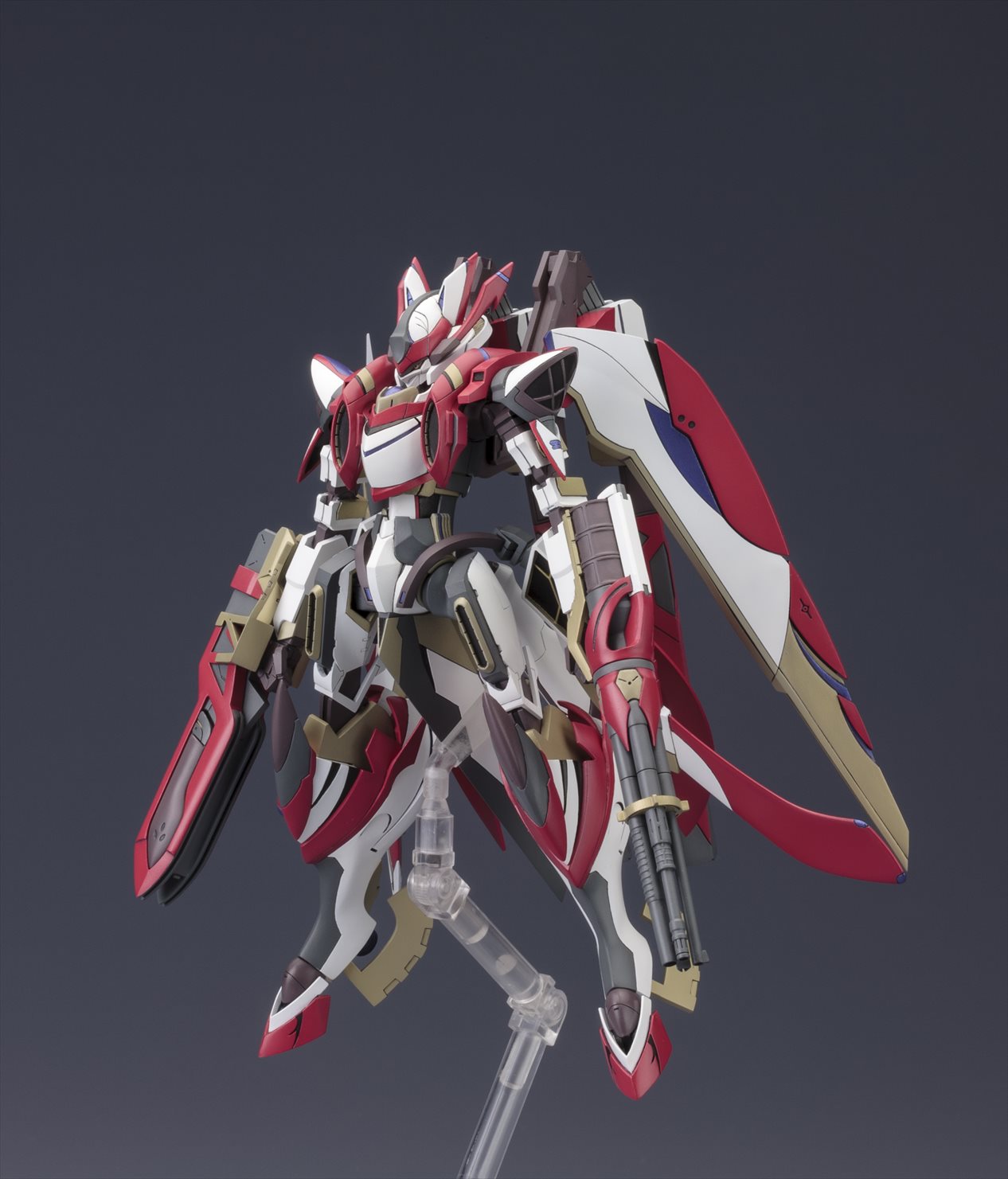 特徴的な機体フォルムやアクションギミックの再現はもちろんの事、多彩なオプションパーツが付属する豪華仕様でのリリースとなります。特徴的なカラーリングを、7色成型と水転写デカール(予定)で可能な限り再現。各部の関節が可動し、劇中で見せた様々なアクションに対応。頭部、背部ウイングなど各部位の差し替えにより「フルバースト形態」を再現可能。「HEPキャノン」「マルチランチャー」「大剣」「大型ビーム砲」「ビームキャノン」「アームソードカウンター」等、劇中で登場した武装が多数付属。劇中で印象的だった浮遊ポーズでのディスプレイが可能なスタンドベースが付属。