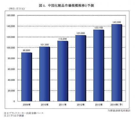 ◆ 2013年の中国化粧品市場は前年比8.3%増の1,331億5,000万元