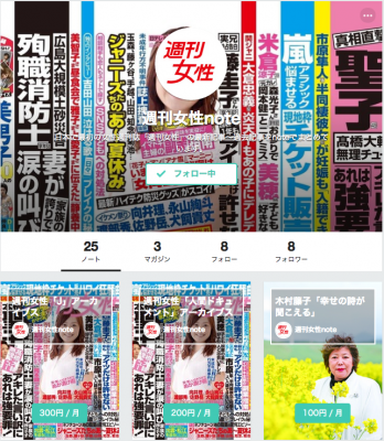 ソーシャルメディアプラットフォームnote(運営:株式会社ピースオブケイク・代表取締役CEO 加藤貞顕)にて、主婦と生活社「週刊女性」の購読サービスが2014年9月1日にスタートいたします。本サービスは、noteのメディアを手軽に作成できる「マガジン」の継続課金機能を用いて運営されます。