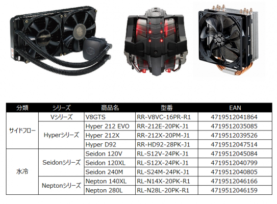 Cooler Master Technology Inc.(本社:台湾)は2014年8月30日、Intel最新第4世代CPU(LGA2011-3)推奨CPUクーラーを発表しました。