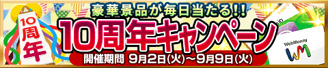 ご愛顧頂いた皆様への感謝として、最大150人以上のユーザーの方に豪華プレゼントが当たる10周年キャンペーンを9月2日から9月9日まで開催させて頂きます。