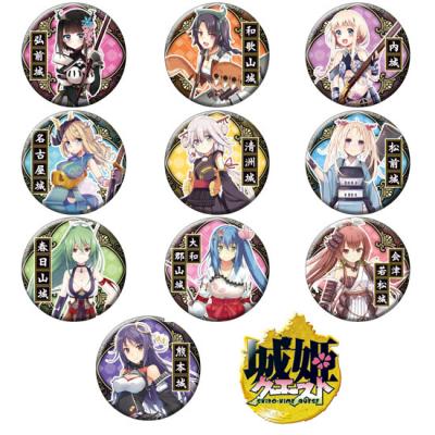 今回は話題のお城擬人化企画「城姫クエスト」が登場!種類は全部で10種に及ぶ缶バッジが登場します。缶バッジのサイズは直径約55ミリの大きめサイズとなっておりますので、