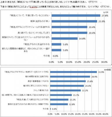 その結果、1位が「すがすがしい気持ちで一日をスタートできる」(33.9%)、2位が「朝の時間を有効に活用できる」(28.9%)、次いで「美容・健康増進につながる」(25.8%)となり、上位3位については、朝活実践者が朝活をしている理由の上位3位と同様の結果となった。
