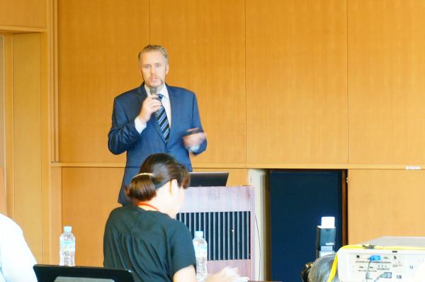 日本人グローバル人材や外国人留学生など世界中の若者が海外に挑戦せいていくための情報支援、人的支援を展開するフォースバレー・コンシェルジュ株式会社 代表取締役社長・柴崎 洋平さんと日本における英語教育および教育全般での幅広い事業展開を手掛けるピアソン・ジャパン 株式会社 営業本部本部長アラン・マルコムさんによる基調講演を行いました。柴崎さんは、「国際人育成の重要性について」をテーマに若いうちから海外に出て、海外の優秀な学生に触れる重要性などについてお話をしました。また、アラン・マルコムさんは「英語教育と国際人育成について」をテーマにきれいな英語でなくていいので、積極的に英語で発言する重要性についてなどをお話ししました。