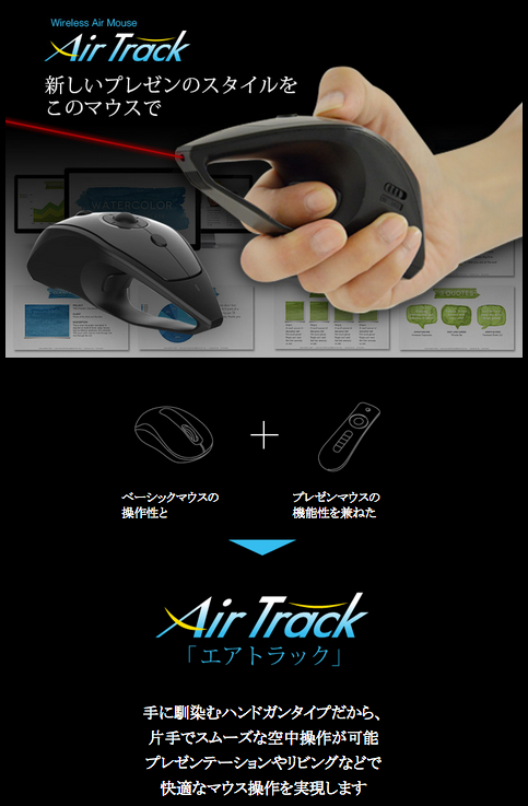 【Air Track(エアトラック)】は、マウスの使用場所がデスク上であるという概念を打ち崩して場所を選ばないマウスとして大変人気があるエアマウスシリーズの新商品である。