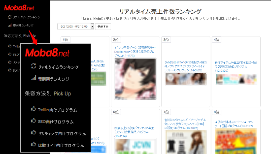 株式会社ファンコミュニケーションズ(東京都渋谷区、代表取締役社長 柳澤安慶 東京証券取引所市場第一部:2461)が運営する、スマートフォン向けアフィリエイトサービス「Moba8.net(モバハチネット)」(http://moba8.net/)は、2014年9月8日(月)、アフィリエイター会員(以下AS会員)向けに、“まさにいま売れている案件”を表示するリアルタイムランキングを含む、4つのランキング機能のβ版を提供開始いたしました。リアルタイムランキングは国内ASPでは初めての実装となり(※1)、これによりMoba8.netのAS会員は、より旬なタイミングを逃さず効果的に商品やサービスを紹介することができるようになります。