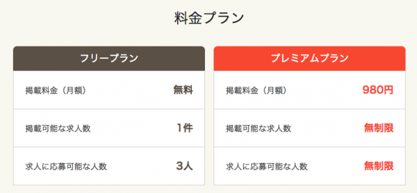 小規模なカフェや居酒屋などでも継続的に採用活動が行えるよう、favyジョブでは月額980円で、掲載求人数無制限、応募可能な人数無制限といったすべての機能が使えるよう設定しています(プレミアムプラン)。また、求人掲載、採用など主要機能を0円で利用できる(フリープラン)の提供も行っています。