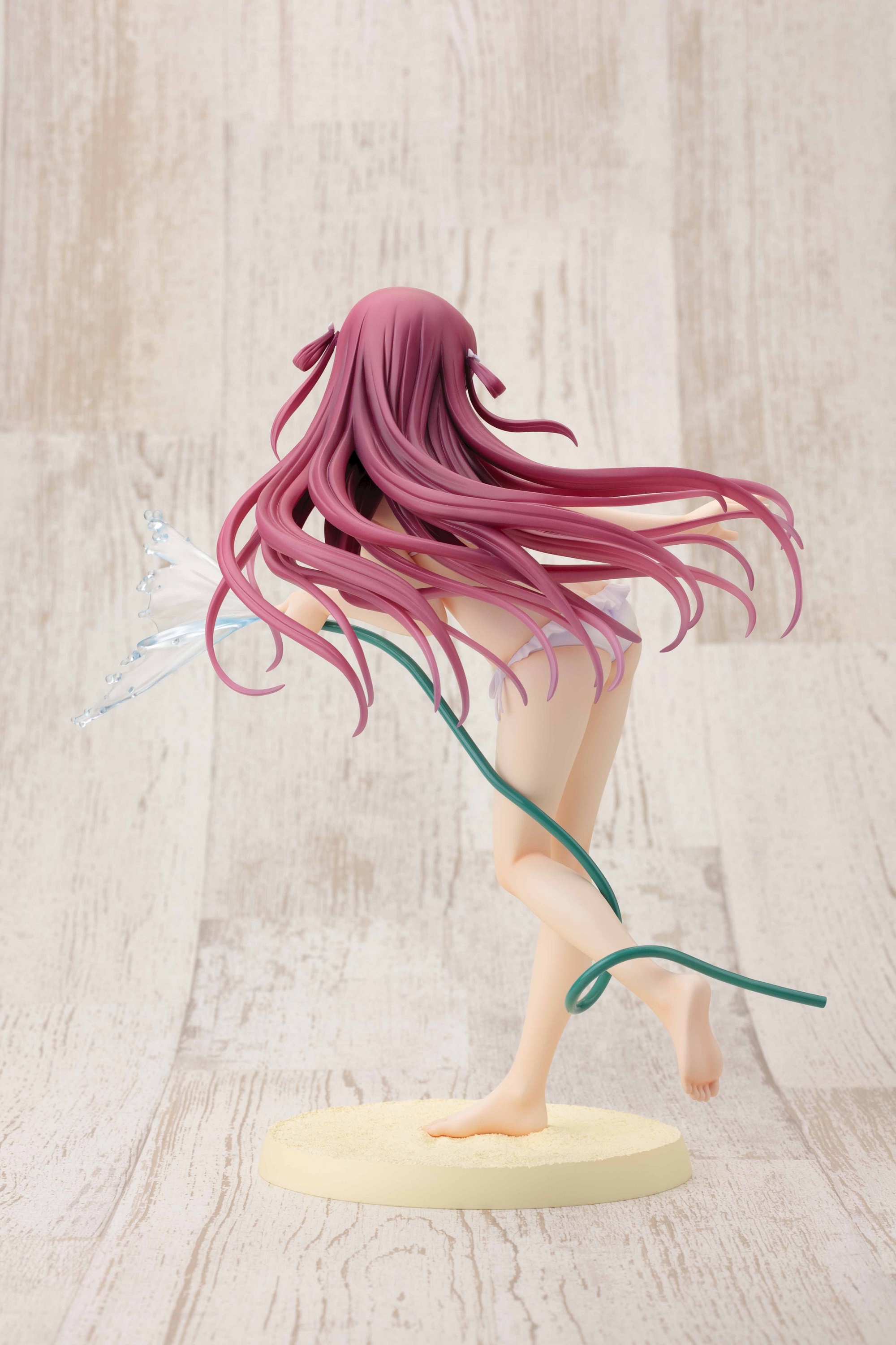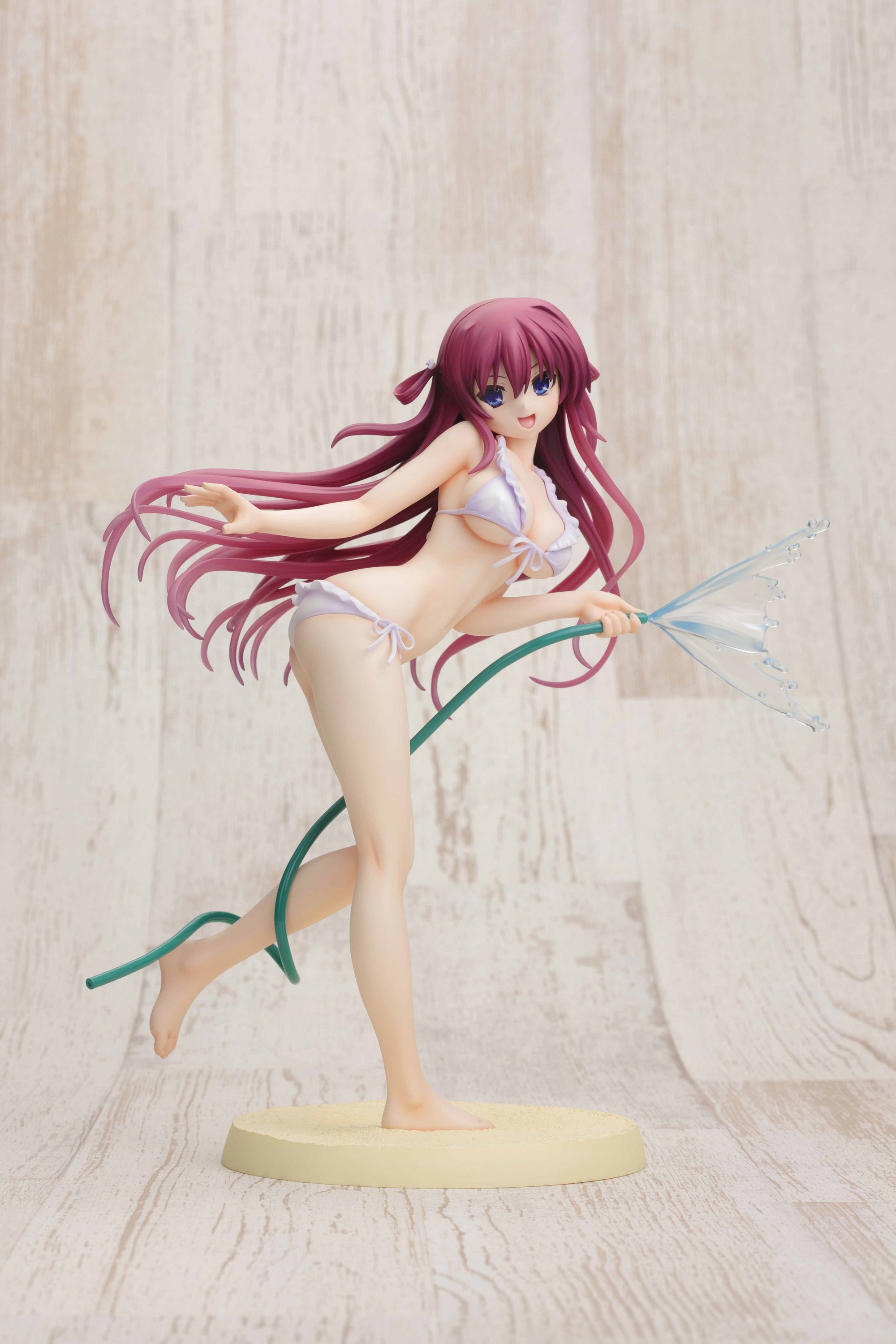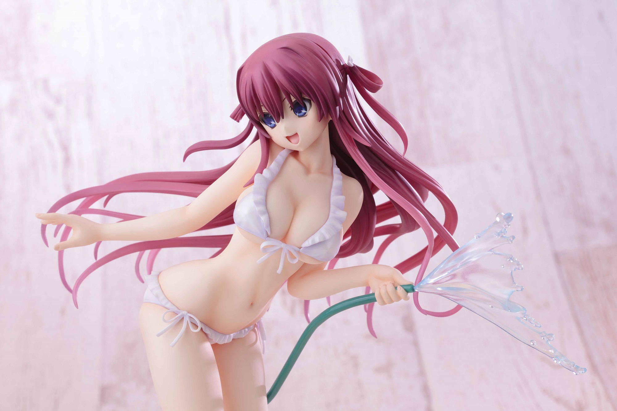 注目の新作TVアニメ『グリザイアの果実』より、目を奪われるようなスタイルの持ち主「周防天音」を、水着姿で立体化しました。キラキラと透明な水が噴き出すホースを持ち、眩しい笑顔でこちらをふりむくポーズで情感あふれるフィギュアに仕上げました。純白の水着に包まれ、スタイル抜群の柔らかそうなボディが魅惑的です。風になびくボリュームたっぷりな髪の毛先にはクリアパーツを使用し、ビーチで太陽の光を浴びているような爽やかさを表現しました。水着には上品なパール塗装が施されています。華やかな魅力がほとばしる天音を是非、お手元でご堪能下さい。