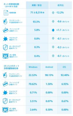 BBソフトサービスの「Internet SagiWallTM(インターネットサギウォール)」で検知したデータを基にした、2014年8月度のインターネット詐欺リポートです。