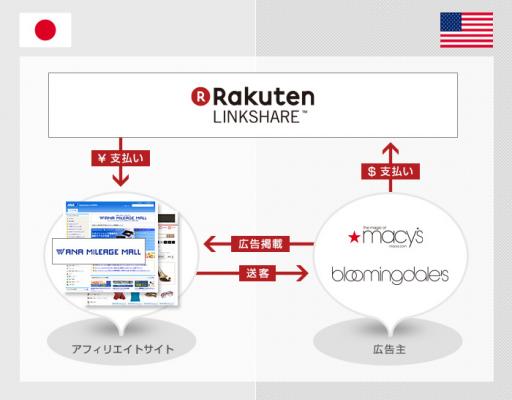 「リンクシェア アフィリエイト」によるアフィリエイトネットワークは、日本を含む5カ国で展開しており、各国で共通のアフィリエイトシステムが利用されています。このため、米国の広告主および「リンクシェア アフィリエイト」を利用する日本のアフィリエイトサイトは、本サービス利用に際し、追加費用や特別なオペレーションの必要がありません。また、アフィリエイトサイトは日本円で成果報酬を受け取ることもできます。
