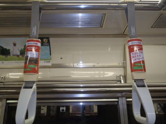 都営地下鉄の大江戸線、三田線、浅草線の3路線の一部車両のすべてのつり革を1年間ジャックして、広告を展開し、都心の人気スポットと首都圏のベッドタウンを結ぶ交通網をご使用される延べ約700万人の方々にスキマトークの魅力を伝えてまいります。