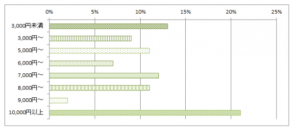 1か月の利用料金を尋ねたところ、1万円以上と回答した方最も多く、比較的高額な利用料金となっていることがわかりました。